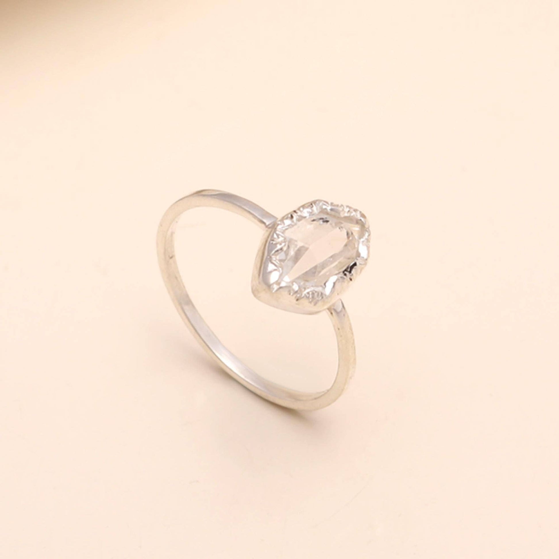 Handcrafted in high-quality sterling silver, this minimalist and delicate ring is perfect for those who appreciate raw, organic gemstones and understated elegance. Whether worn alone for a subtle statement or stacked with other rings, this Herkimer diamond ring is an ideal choice for lovers of bohemian, celestial, and modern jewelry.