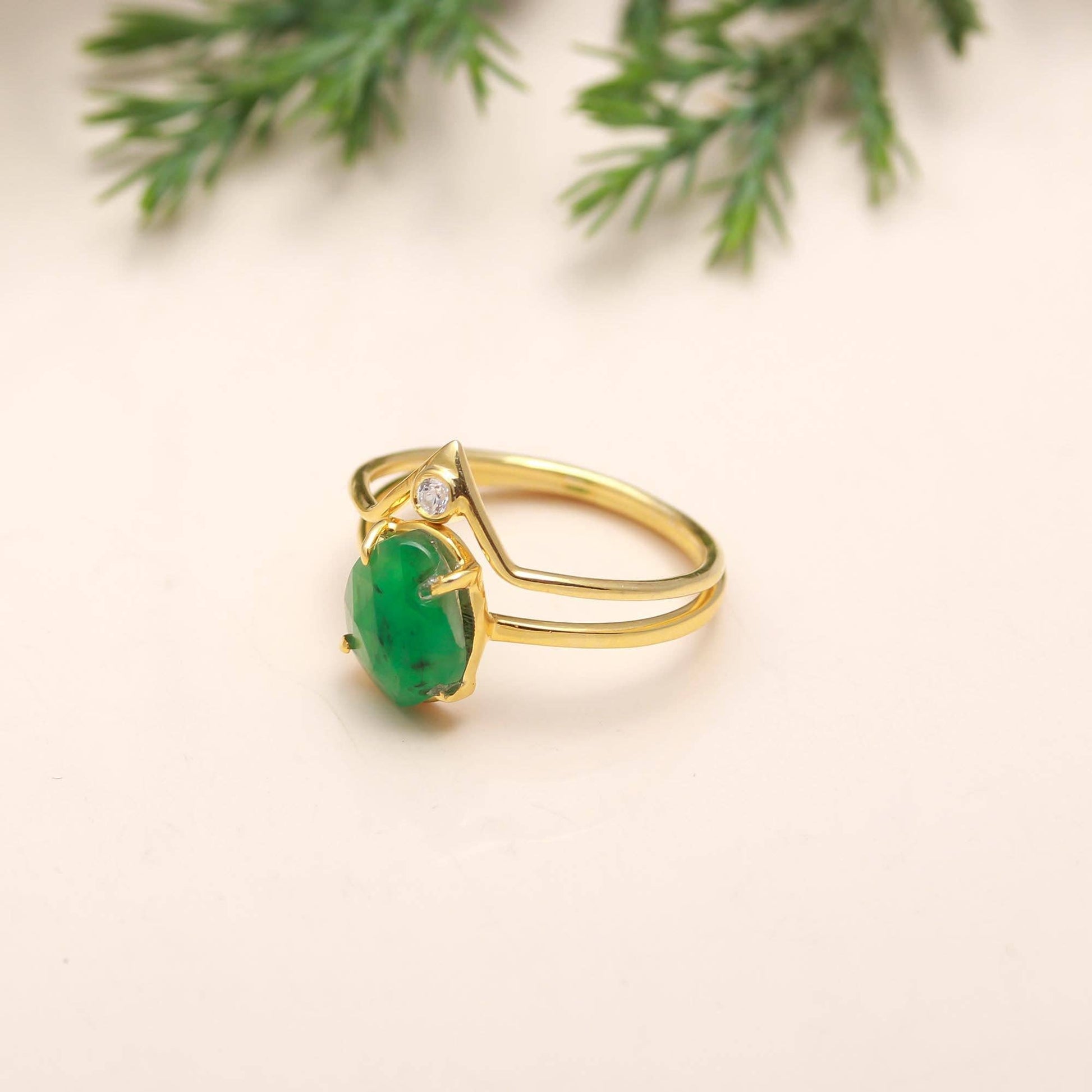 925 Sterling Silver Zambia Emerald Stackable Ring Size 9