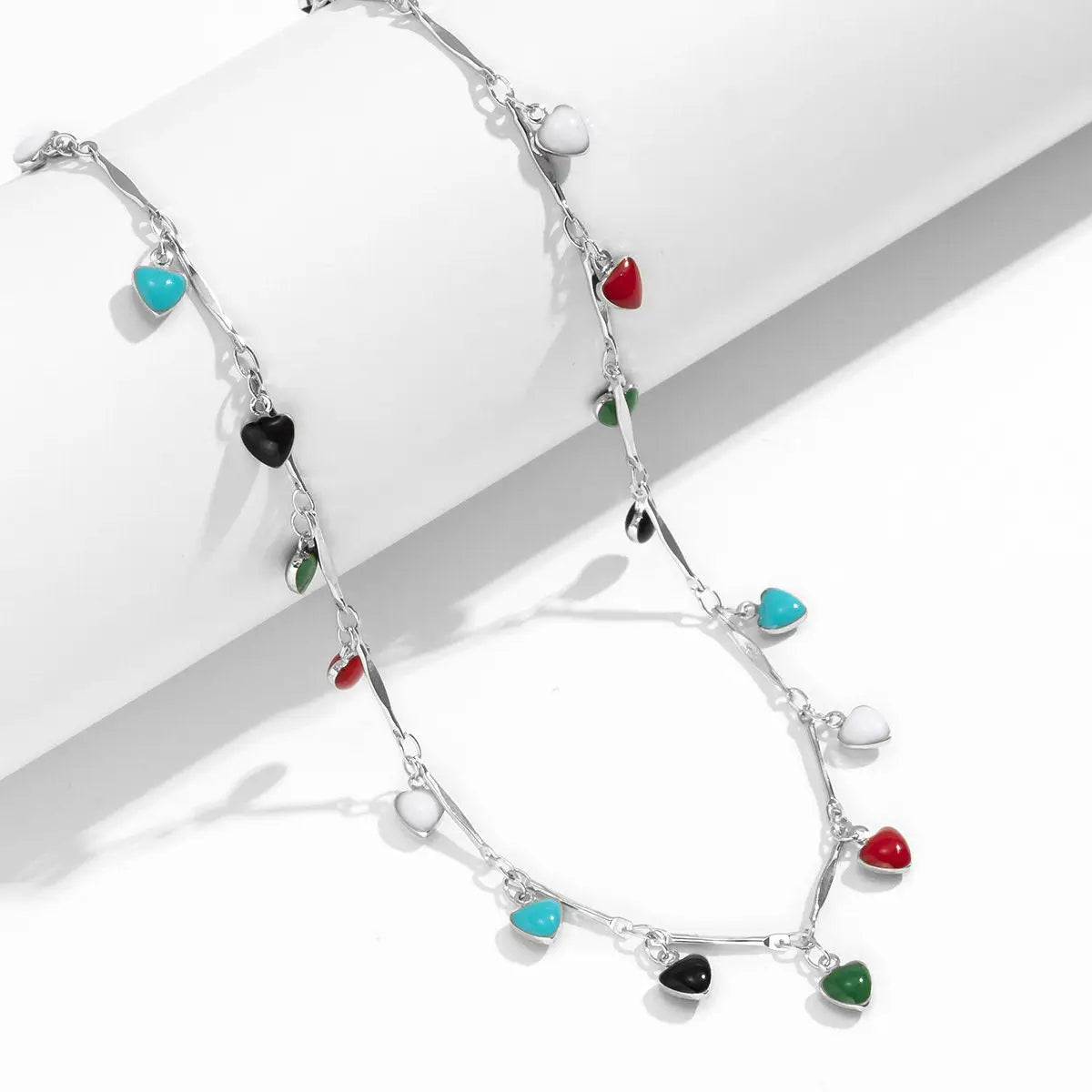 Boho Enamel Heart Charm Waist Belly Chain in Solid Copper