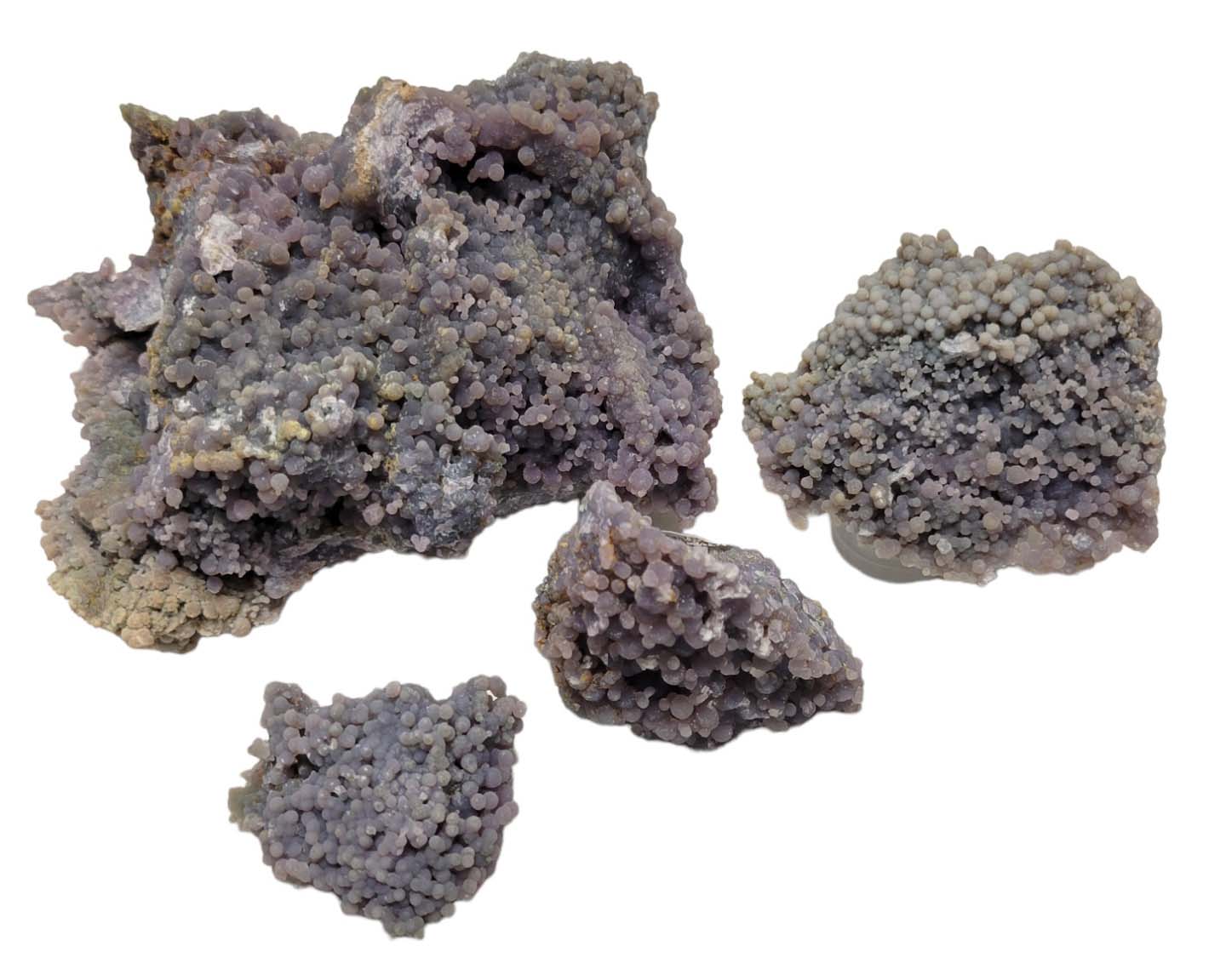 Grape Agate is the name given to the botryoidal Purple Chalcedony that has been recently discovered in Indonesia. The name reflects the “grapes” purple color and how they occur in clusters that resemble bunches of grapes. Grape agate entered the mineral market in 2016. Its popularity quickly spread through mineral shows, rock shops, websites, and online marketplaces.