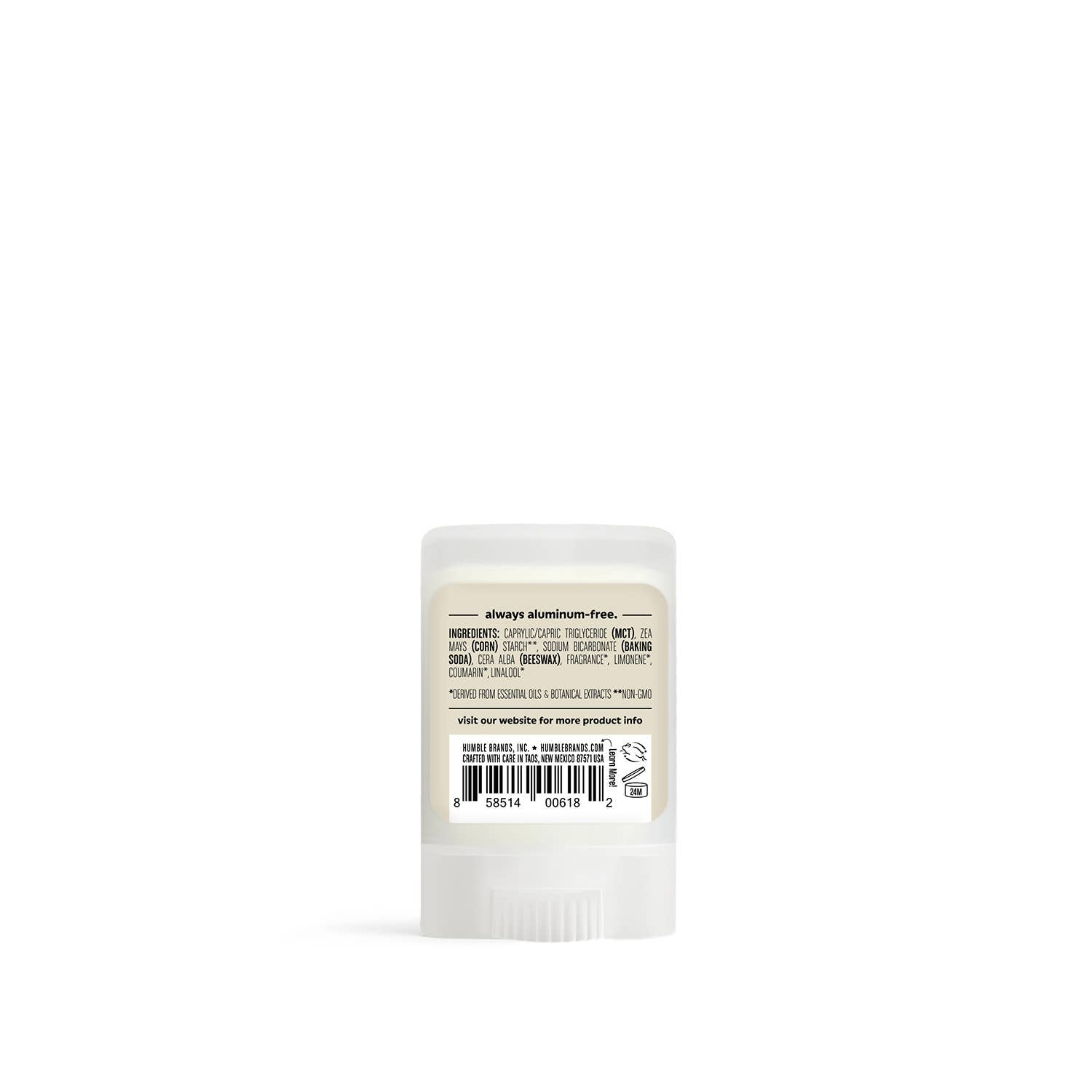 Product Description: Made with simple, highly effective ingredients (MCT oil, non-GMO corn starch, beeswax, baking soda and botanically-based scents). Humble Brands Deodorant is formulated to absorb and neutralize body odor. Humble Brands Deodorant has no aluminum, alcohol, dyes, parabens, sulfates or artificial fragrance. Certified Cruelty-Free by Leaping Bunny and a 1% for the Planet product that gives back with every purchase. Full size deodorant containers are made from 75% post consumer recycled plastic.