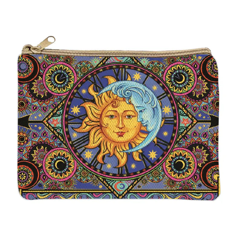 Discover the "Sun And Moon" Makeup/Cosmetic Bag from Benjamin International. Measuring at 8.75" x 6.5", this bag is the perfect size for all your beauty essentials. Crafted with an emphasis on design and fair dealings, this product reflects our mission to connect global artisans with consumers. As part of our diverse product range, this bag is either American-made, celebrating local artistry, or imported from places like Nepal, Indonesia, and India, each with its unique beauty and craftsmanship. Whether you're on-the-go or organizing at home, this bag offers a stylish solution for your makeup storage needs.